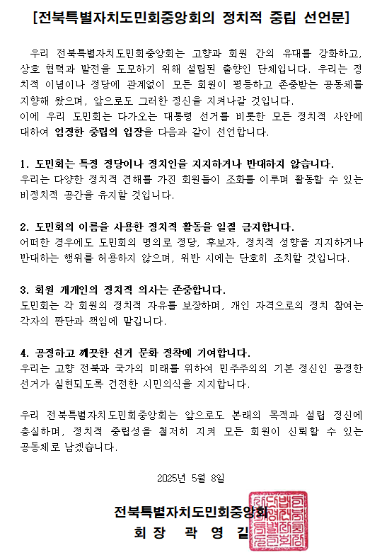 본회 정치적 중립 선언 공지