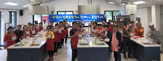 (사)전라북도자원봉사센터(이사장 김기원)와 경기도 수원 전북도민회(회장 한교훈)는 29일 장수군을 방문해 봉사활동과 여행을 즐기는 프로그램을 진행했다.수원 전북도민회 회원60여명은 이 날 지역특산물인 사과와 오미자를 활용한 간식용 사과파이와 오미자청 200개를 만들었다.이어 10개 지역아동센터, 요양원, 장애인 복지시설 등 아동, 어르신들에게 간식을 전달했다.또 단풍이 아름다운 와룡자연휴량림을 찾아 자원봉사자의 숲 해설로 숲 속 체험을 통한 명상, 힐링체험과 삼림욕도 체험했다.의암 주논개 생가지에서는 애국충정을 되새기는 문화해설도 함께했다.수원 전북도민회 한교훈 회장은 “봉사활동과 여행을 통해 보람과 즐거운 시간을 가졌다”면서 “앞으로 어려운 이웃의 마음을 헤아리는 참된 자원봉자가 되겠다”고 말했다.전북도센터 관계자는 “전북를 알리고 봉사 하는 새로운 개념의봉사문화 확산이 계속되길 바란다”면서 “이같은 자원봉사 프로그램을 앞으로도 자주 마련하도록 하겠다”고 밝혔다. /박정미기자 jungmi@