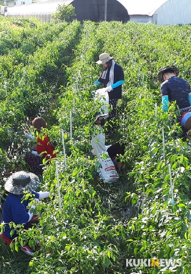 "야, 너는 왜 그렇게 빨리 나가". "생각해봐. 영어 단어장 한 번 보고, 두 번째 보는 게 낫지 않아? 그런식이야. 다시 돌아 온다고.""그렇게 영어 공부를 했으면 토익 점수 공개해라." "혹시 점수가 신발 사이즈 아냐?" "지금은 못 밝혀. 이 다음에 밝힐 게. 나는 공부해야 할 이유가 생겼다."학생들은 말이 끝날 때 마다 웃음보를 터트린다. 대화 내용만으로 현장을 짐작하기 어렵다. 고추밭 수확현장 풍경이다. 유난히 앞서가는 학생이 동료 학생들로 부터 핀잔을 듣자 예의 영어 공부 이야기를 꺼낸 것이다.냉장고 바지에 토시. 단체복 차림의 대학생들이 고추밭 작업에 한창이지만, 구슬땀 대신 깨알같은 웃음이 묻어 난다. 전라북도 서울장학숙(원장 남정심)은 지난 8일부터 10일까지 군산시 임피면과 서수면 일대에서 봉사활동을 했다. 장학숙 입사생(대학생) 가운데 45명과 직원 등 총 50여명이 출동한 봉사단은 임피제일교회를 베이스캠프 삼아 사흘간 비지땀을 흘렸다. 전북 일부지역에는 폭염주의보가 발령되는 등 무더위로 인해 농작물까지 지친 '복중염천'에 봉사단은 고추따기와 콩순 집기, 옥수수 따기, 참깨 수확하기, 영정 사진 촬영하기 등 다양한 형태의 농촌일손돕기를 했다. 앞서 봉사단은 첫 날 대성중학교 학생들과 진로탐색 활동 등을 했다.학생들은 뙤약볕 아래지만 기쁜 마음으로 나섰다. 시작한 지 십여 분만에 비료포대에 고추를 가득 채운 박경남(익산출신·서울교대 초등교육 1) 학생은 "농촌봉사활동은 두 차례 경험이 있지만 장학숙 봉사활동은 1학년이라 처음이다"면서 "농사 경험은 없지만 기회가 된다면 다시 하고 싶다"고 의욕을 보였다. 일행 가운데 가장 꼼꼼하게 고추수확을 하고 있던 김다빈(전주 출신·한국예술종합학교 실기과 2) 학생은 "할머니를 돕는 마음으로 봉사활동을 하고 있다"고 말했다. 농장주 최병은(61.군산시 서수면 화등리)씨는 "고온다습해서 고추가 많이 죽었다"고 안타까워 하면서도 "경험이 없는 우리 학생들이 일손을 덜어줘서 고맙다"고 인사했다.서울 장학숙은 지난 2010년부터 줄곧 고향에서 봉사활동을 해오고 있다. 애향심을 북돋우고 봉사활동 정신을 함양하기 위해서다. 이들의 장정에 주변에서는 도움도 아끼지 않았다. 재경전북도민회(회장 김홍국)는 삼계탕용 닭 150마리를 보냈고 장학숙 선배들(총동기회)과 재경군산시향우회(회장 박성현), 전주장학숙이 역시 '물량공세'를 했다. 장기철 도민회 상임부회장은 특별히 학생들에게 전북의 50년 역사를 설명한 뒤 향토사랑을 일깨웠다.남정심 원장은 "올해 봉사활동은 주민측에서 일감을 요청하고 학생들도 열심히 해서 체계적으로 이뤄졌다"고 평가하고 "단체로 이뤄지는 봉사활동을 내년부터는 개인활동으로 까지 폭을 넓혀 현장에서 다양하게 도움을 받을 수 있도록 하겠다"고 밝혔다. 쿠키뉴스 군산=소인섭 기자 isso2002@kukinews.com